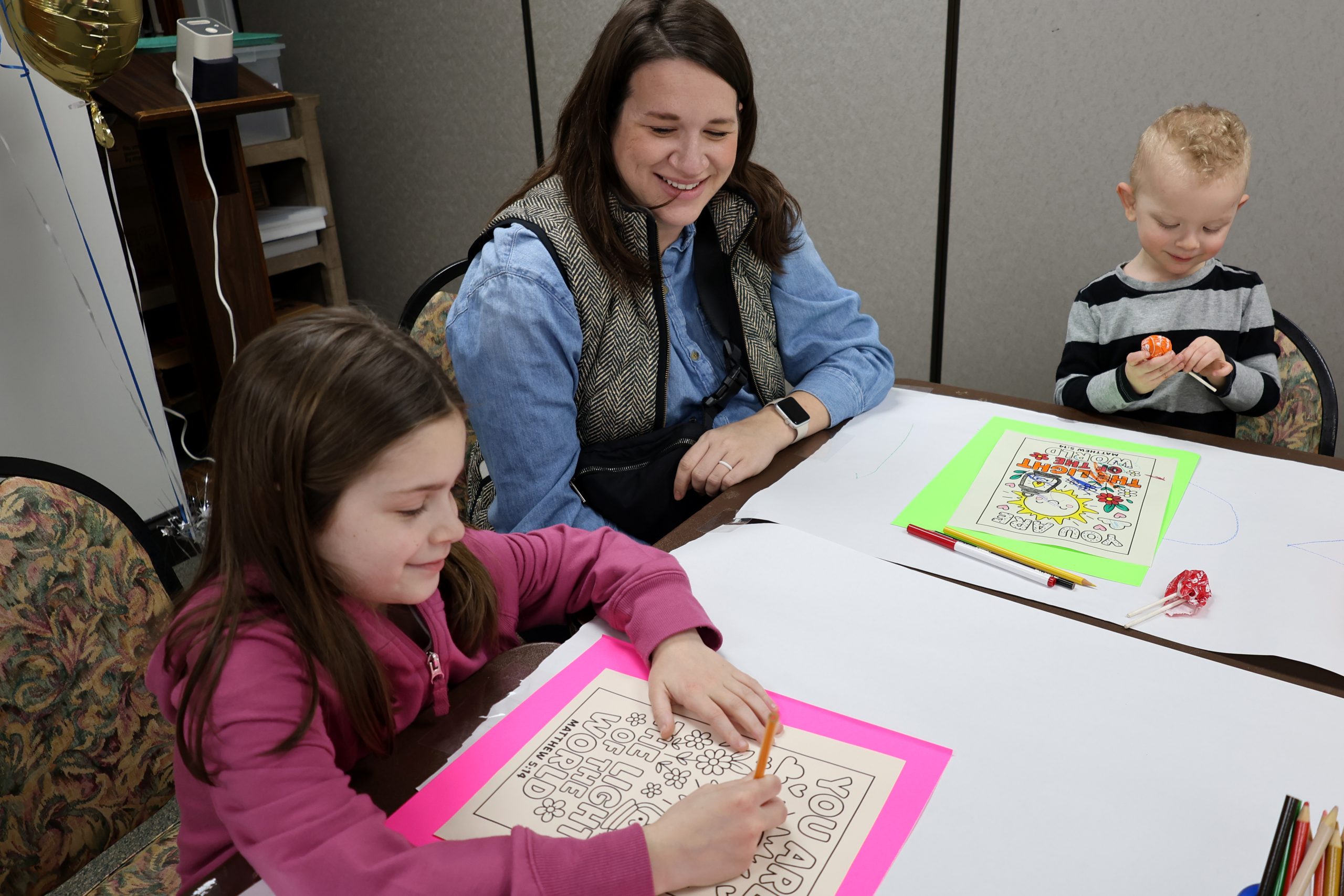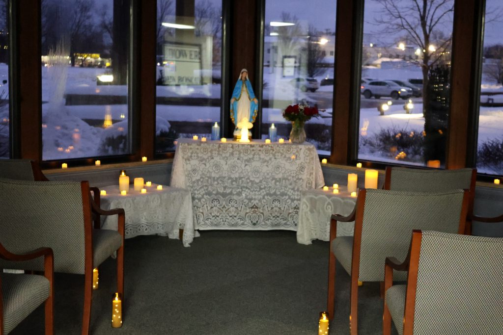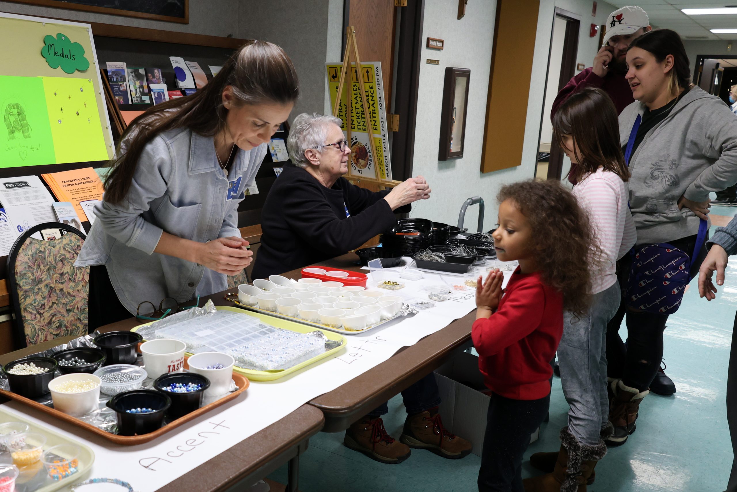 After the Magic Show, Melissa invited participants to enjoy other activities in various rooms: a putting competition, coloring, bracelet making, Bingo, and Music with Michael (our Director of Worship) in the Church. There was also a beautiful Marian Shrine in the Atrium off the lobby for quiet prayer.